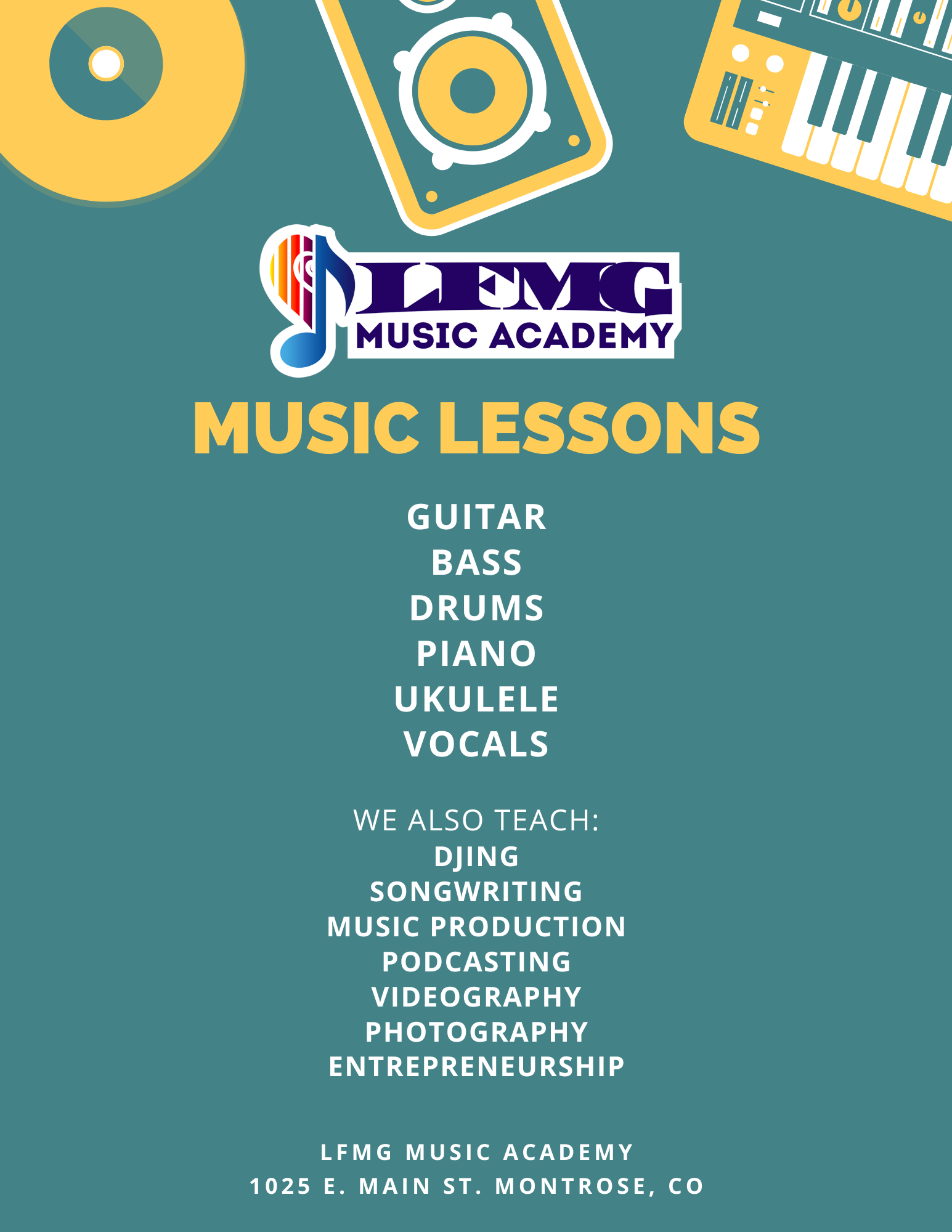 LMFG Music Academy provides hands-on music education, mentorship, and creative development for youth in Montrose and beyond! From studio recording to entrepreneurship, we’re helping the next generation find their voice.