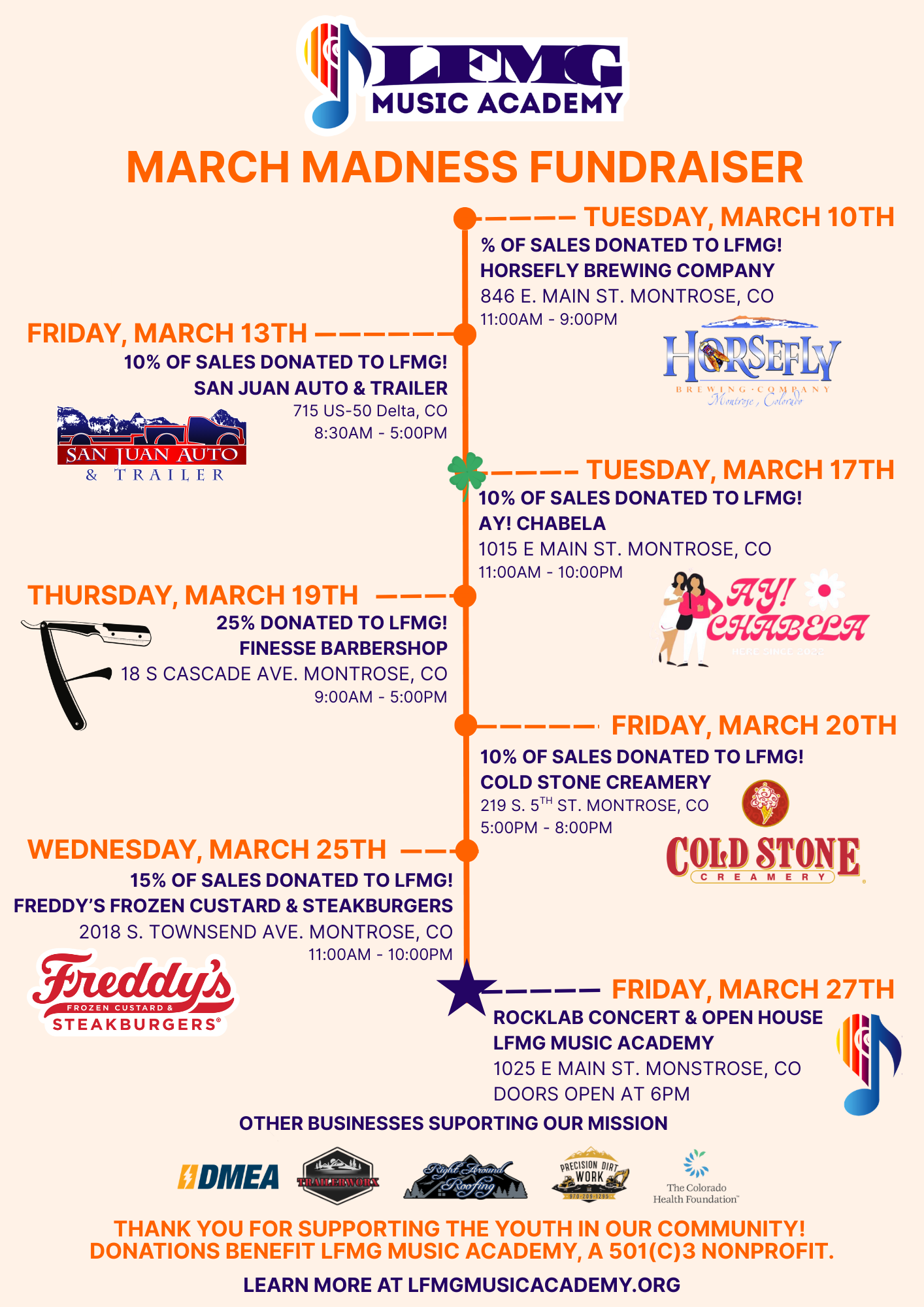 LMFG Music Academy provides hands-on music education, mentorship, and creative development for youth in Montrose and beyond! From studio recording to entrepreneurship, we’re helping the next generation find their voice.